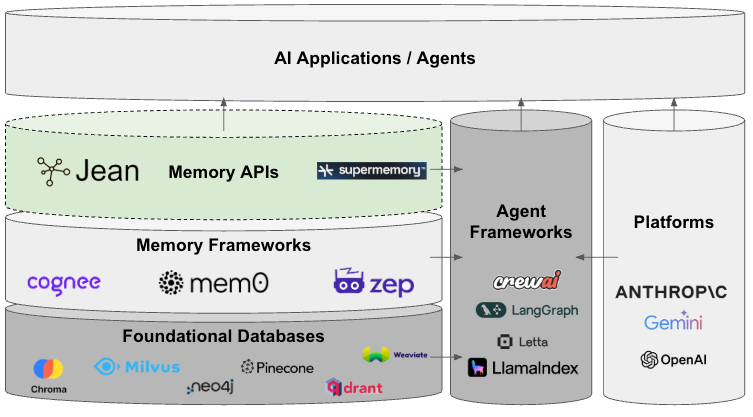 At the most basic level, you can build memory from the ground up using the building blocks of existing vector and graph databases. These databases may be adding agentic features, but it is already clear that this category is seeing massive commodification.
