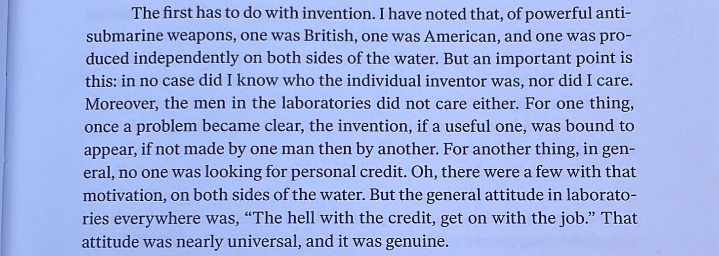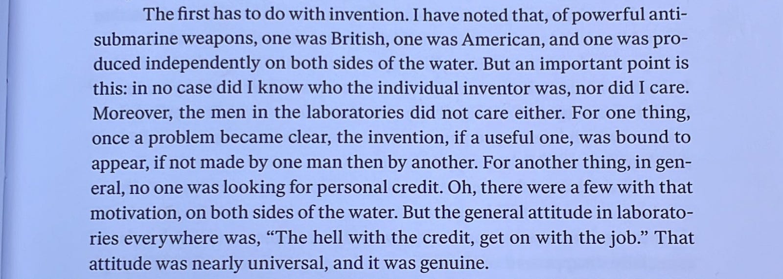 The counter-argument to this is that it doesn’t matter much who invented things initially, problems are apparent themselves, and it is clear someone will capitalize on them, but it requires the skills, intelligence, and institutional backing to do so. Going 1-n could very well be more important.